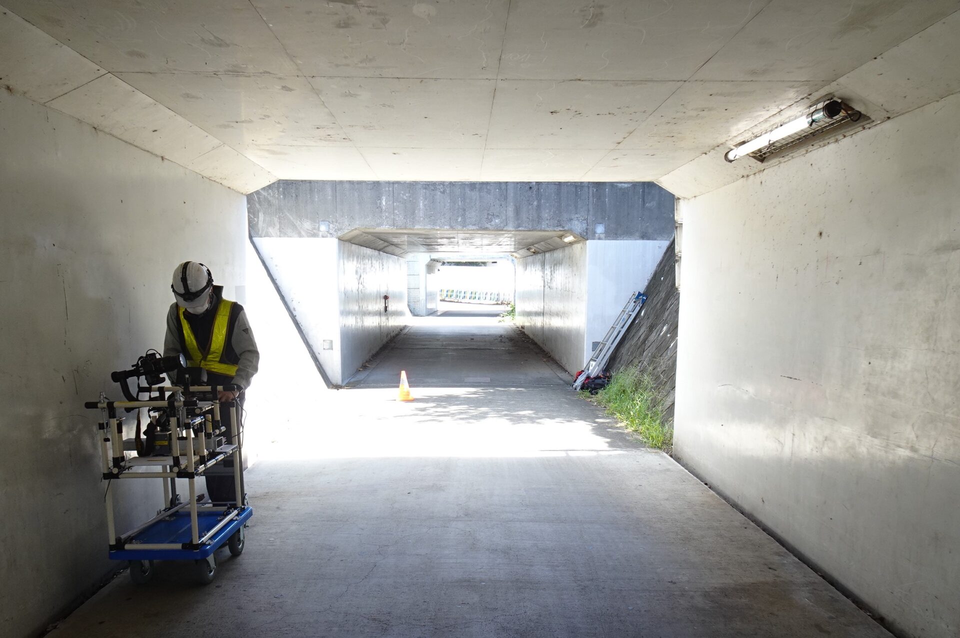 浦和・大宮点検 保全領域 溝橋 画像撮影 国道 定期点検 道路領域 事業主体 大宮国道事務所 所在地 国道17号 利用開始 R4年度に実施 概要 宮前地下横断歩道1、宮前地下横断歩道2について、頂版、側壁に対して画像撮影を実施。 撮影データからAIによりひびわれの長さおよび幅を検出。撮影解像度によっては幅0.05mmまで検出可能であり、目視よりも高精度な点検が可能。 検出したひびわれはCAD化することで点検調書にも反映できる。